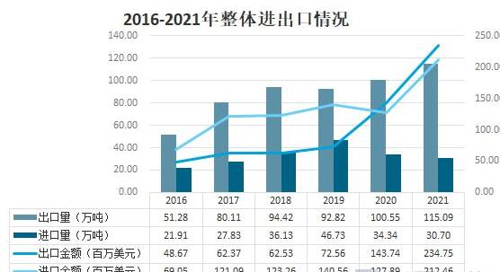 2016-2021年石英進出口情況